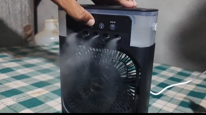 - NOTE This Portable Air Conditioner Fan will not be as cold as air conditioner and can not make the room cool but it is much cooler than the fan and will not make you skin dry. Please Put it Beside You not over 3ft-4ft.In order for the ultrasonic atomizer to work better.